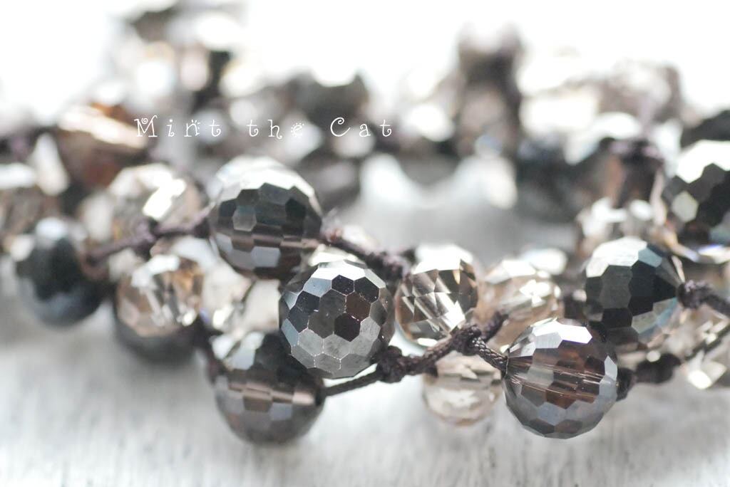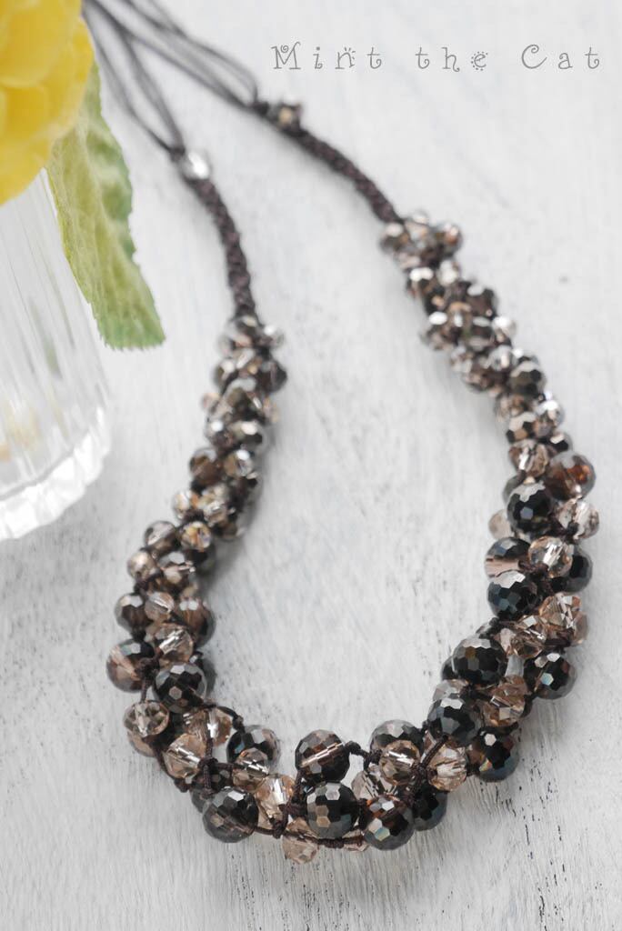 中国紐で編んだネックレスです。ガラスビーズをぎっしりと詰め込んで編んだ、ゴージャスなネックレスとなっております。お色は落ち着いておりますので、どんなお洋服とも相性よくお使いいただけると思います.